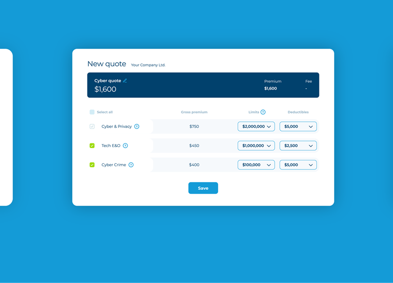 By answering just one question, brokers can now auto-rate and bind admitted professional liability and technology E&O policies for more than 500 SMB professions in minutes, in addition to CFC’s market-leading SME cyber cover. Brokers can then self-service, adjusting rates and limits, choosing or removing elements of cover and binding multiple policies in just a few short clicks, without underwriter referral.